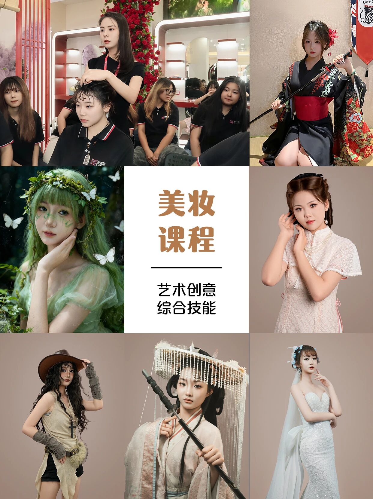 化妆(日常→影视)+ 美发(裁剪→编发)+ 美容(科技→养生)+ 形象策划 + 新媒体运营…